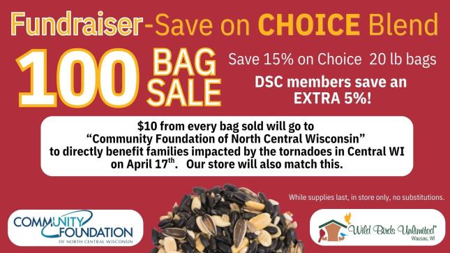 $10 from every bag sold will go to the tornado relief fund through the Community Foundation of North Central Wisconsin. In addition, we'll match the amount raised from the sale!!